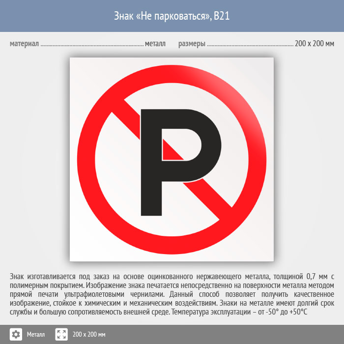 Знак «Не парковаться», B21 (металл, 200х200 мм) в Яхроме купить