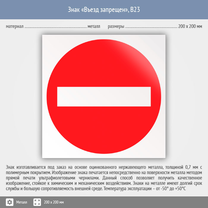 Знак «Въезд запрещен», B23 (металл, 200х200 мм) в Яхроме купить