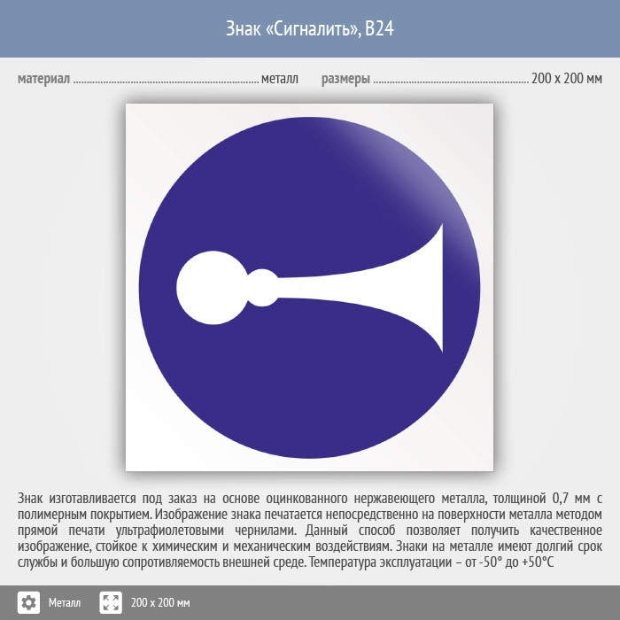 Знак «Сигналить», B24 (металл, 200х200 мм) в Яхроме купить