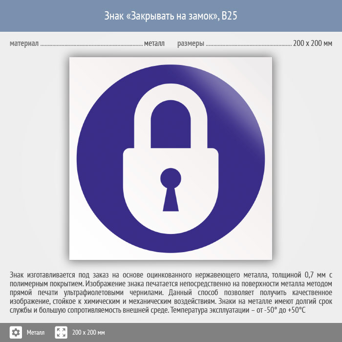 Знак «Закрывать на замок», B25 (металл, 200х200 мм) в Яхроме купить