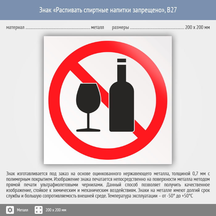 Знак «Распивать спиртные напитки запрещено», B27 (металл, 200х200 мм) в Яхроме купить