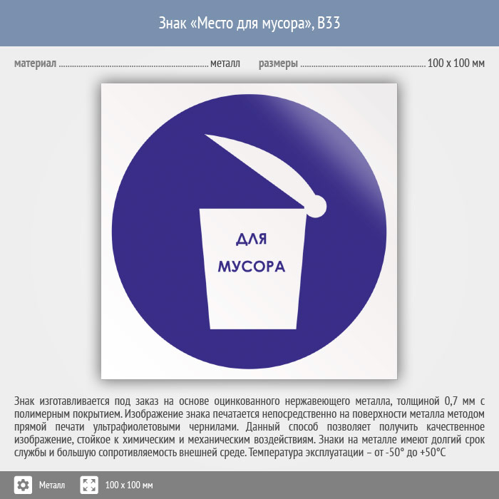 Знак «Место для мусора», B33 (металл, 100х100 мм) в Яхроме купить
