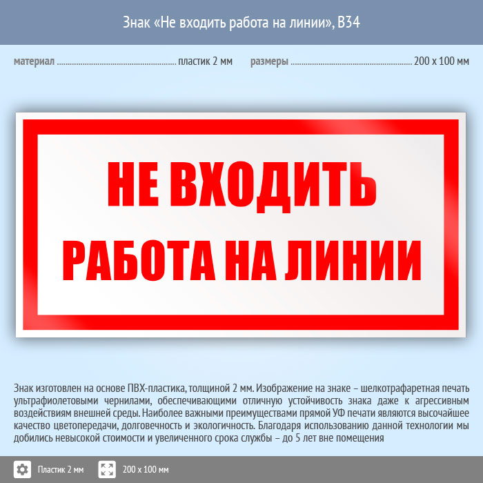 Знак «Не входить работа на линии», B34 (пластик, 200х100 мм) в Яхроме купить