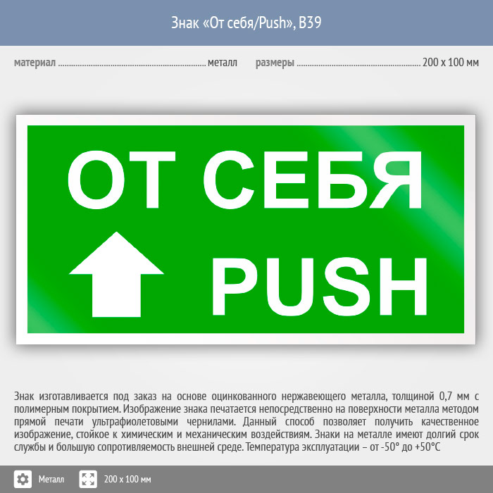 Знак «От себя/Push», B39 (металл, 200х100 мм) в Яхроме купить