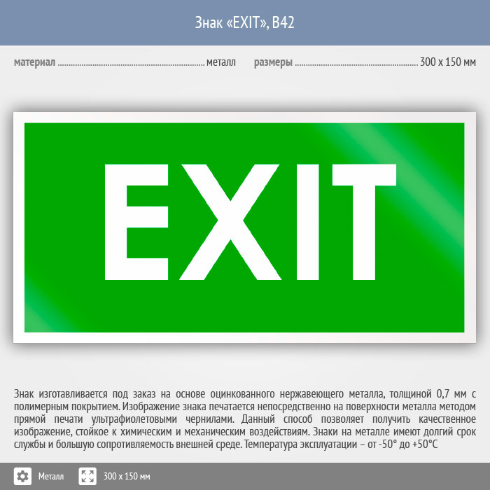 Знак «EXIT», B42 (металл, 300х150 мм) в Яхроме купить