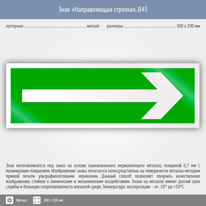 Знак «Направляющая стрелка», B45 (металл, 300х100 мм) в Яхроме купить