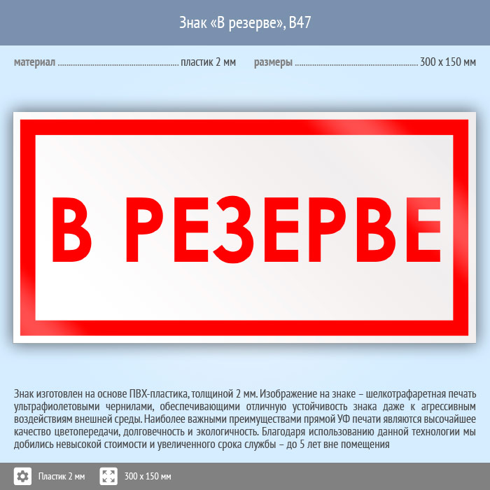 Знак «В резерве», B47 (пластик, 300х150 мм) в Яхроме купить
