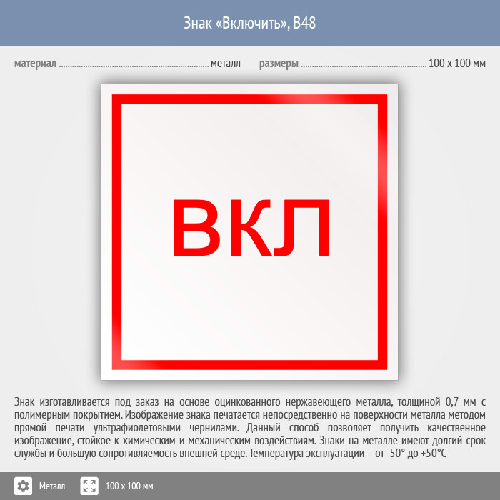 Знак «Включить», B48 (металл, 100х100 мм) в Яхроме купить