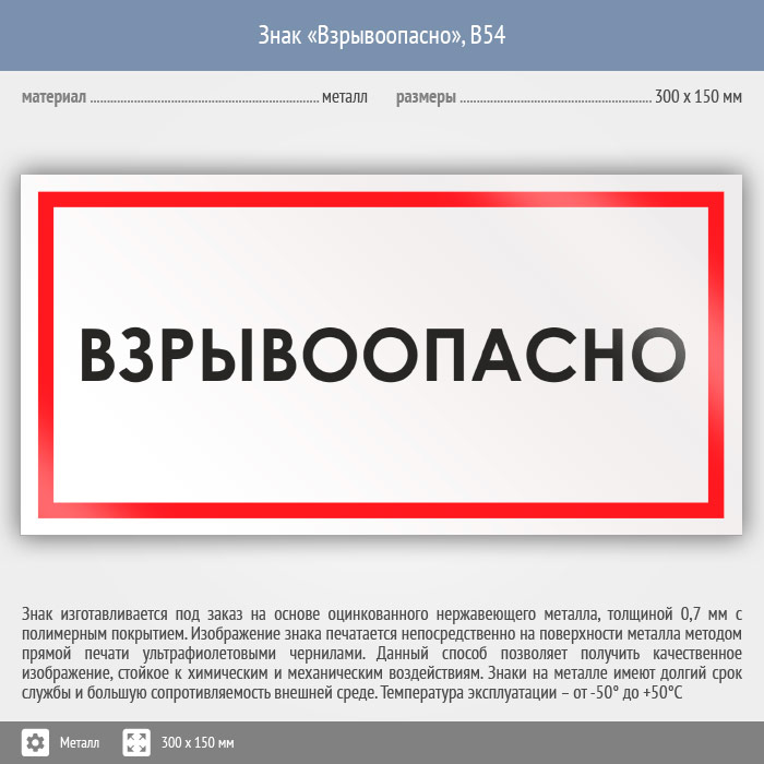 Знак «Взрывоопасно», B54 (металл, 300х150 мм) в Яхроме купить
