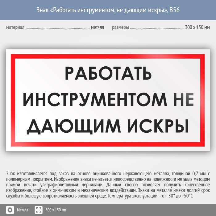 Знак «Работать инструментом, не дающим искры», B56 (металл, 300х150 мм) в Яхроме купить