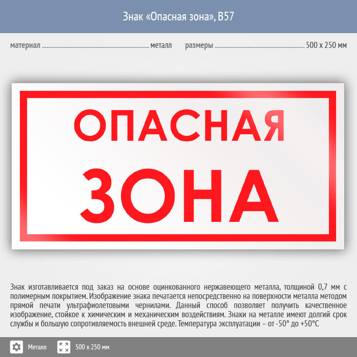 Знак «Опасная зона», B57 (металл, 500х250 мм) в Яхроме купить