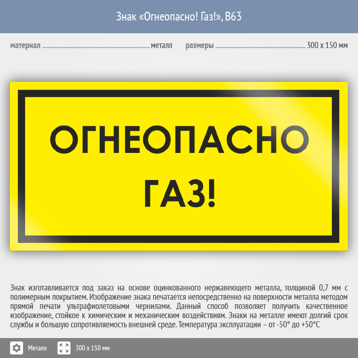 Знак «Огнеопасно! Газ!», B63 (металл, 300х150 мм) в Яхроме купить