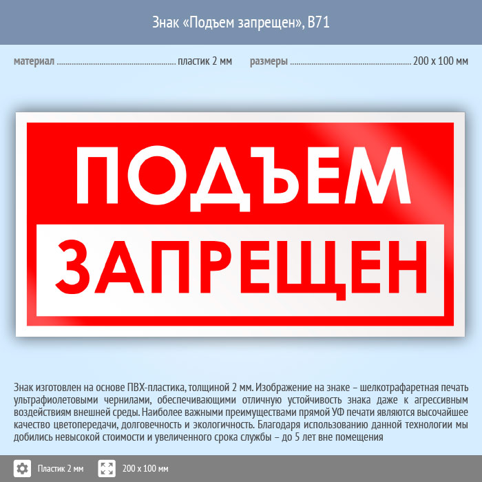 Знак «Подъем запрещен», B71 (пластик, 200х100 мм) в Яхроме купить