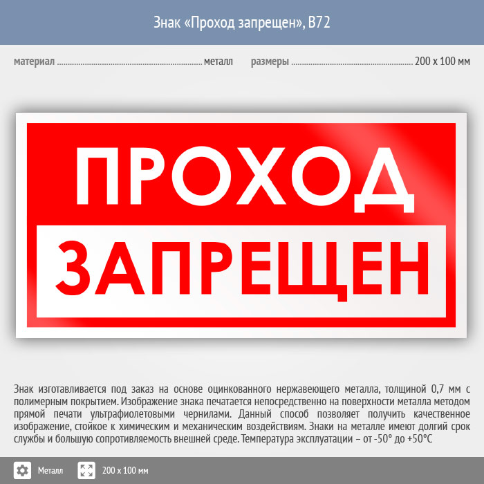 Знак «Проход запрещен», B72 (металл, 200х100 мм) в Яхроме купить