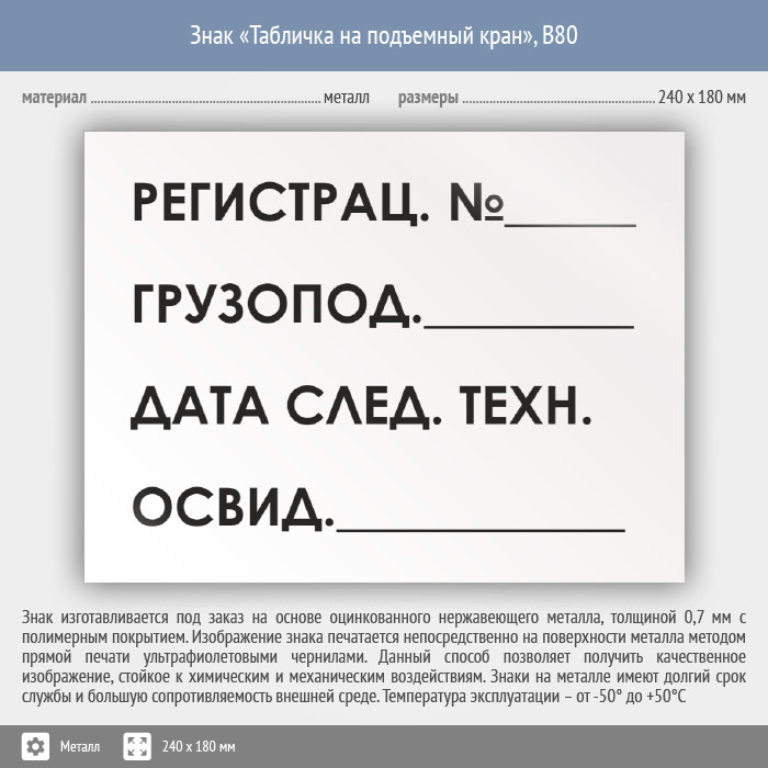 Знак «Табличка на подъемный кран», B80 (металл, 240х180 мм) в Яхроме купить