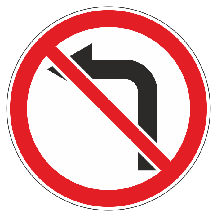 Дорожный знак 3.18.2 «Поворот налево запрещен» (металл 0,8 мм, III типоразмер: диаметр 900 мм, С/О пленка: тип А коммерческая) в Яхроме купить
