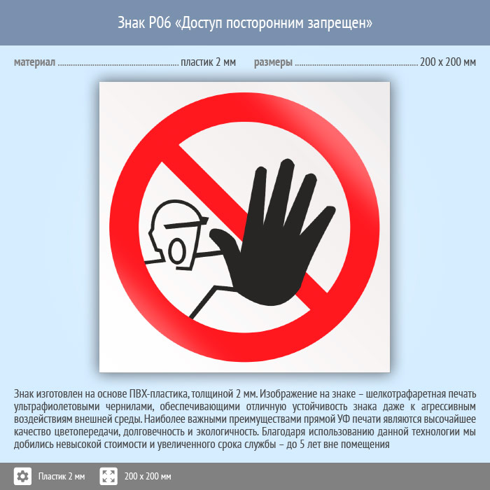 Знак P06 «Доступ посторонним запрещен» (пластик, 200х200 мм) в Яхроме купить