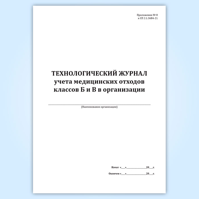 Технологический журнал учета медицинских отходов классов Б и В в организации в Яхроме купить