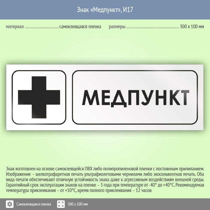Знак «Медпункт», И17 (пленка, 300х100 мм)
