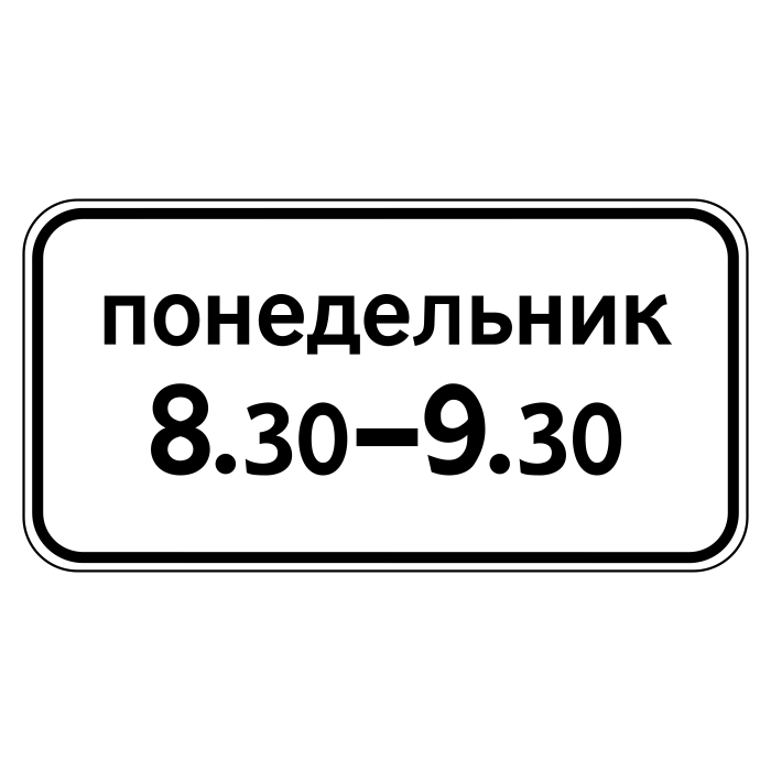 Дорожный знак 8.5.7 «Время действия» (металл 0,8 мм, III типоразмер: 450х900 мм, С/О пленка: тип А коммерческая) в Яхроме купить