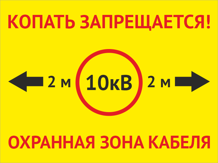 Табличка «Охранная зона кабеля 10 кВ. Копать запрещается», OZK-01 (металл, 400х300 мм) в Яхроме купить