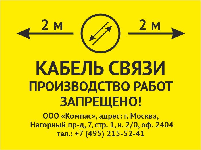 Знак «Охранная зона кабеля связи. Производство работ запрещено», OZK-03 (пластик 2 мм, 400х300 мм) в Яхроме купить
