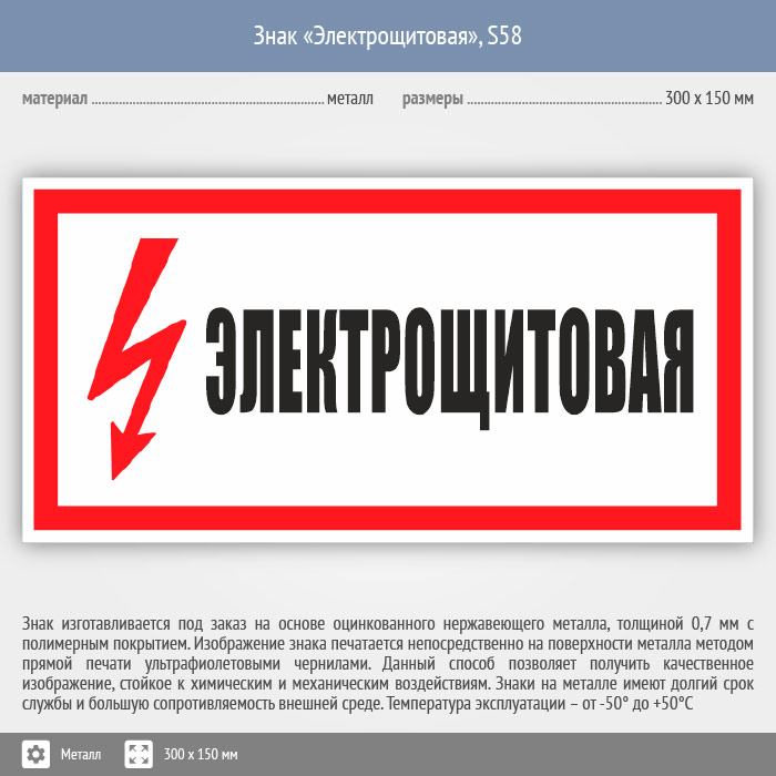 Знак (плакат) «Электрощитовая», S58 (металл, 300х150 мм) в Яхроме купить