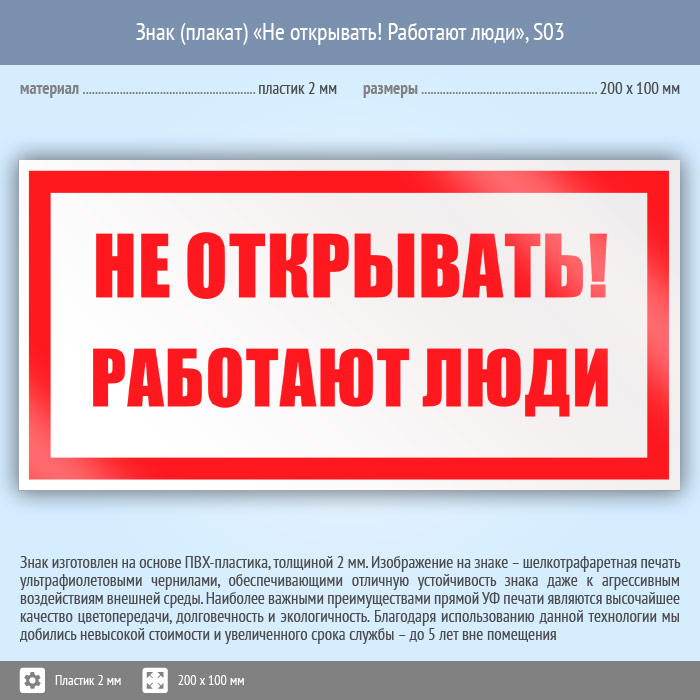 Знак (плакат) «Не открывать! Работают люди», S03 (пластик, 200х100 мм) в Яхроме купить