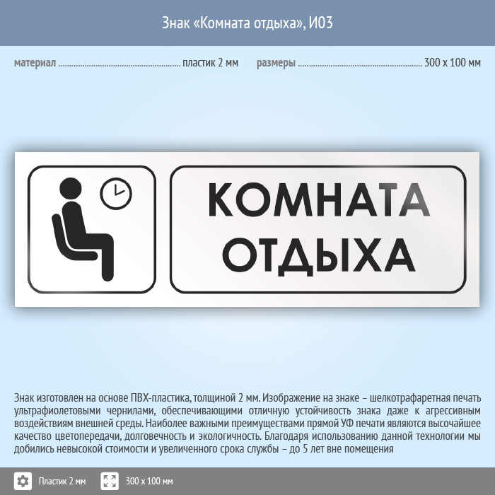 Знак «Комната отдыха», И03 (пластик, 300х100 мм) в Яхроме купить