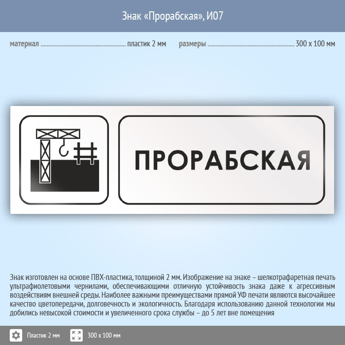 Знак «Прорабская», И07 (пластик, 300х100 мм) в Яхроме купить