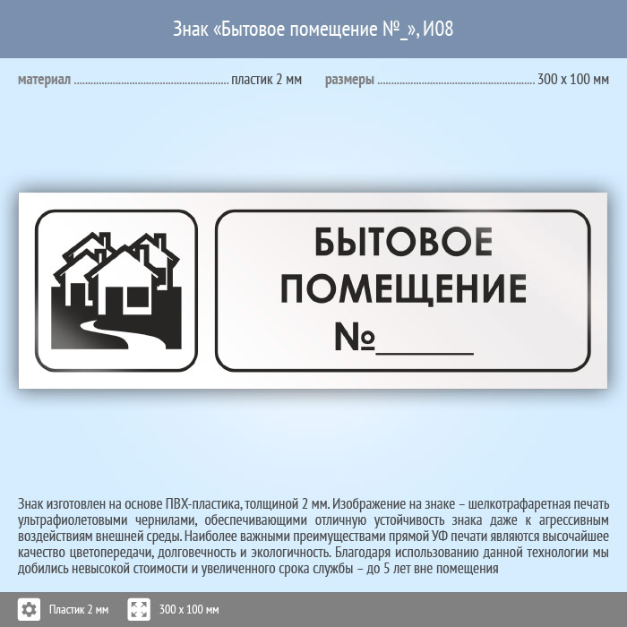 Знак «Бытовое помещение №_», И08 (пластик, 300х100 мм) в Яхроме купить