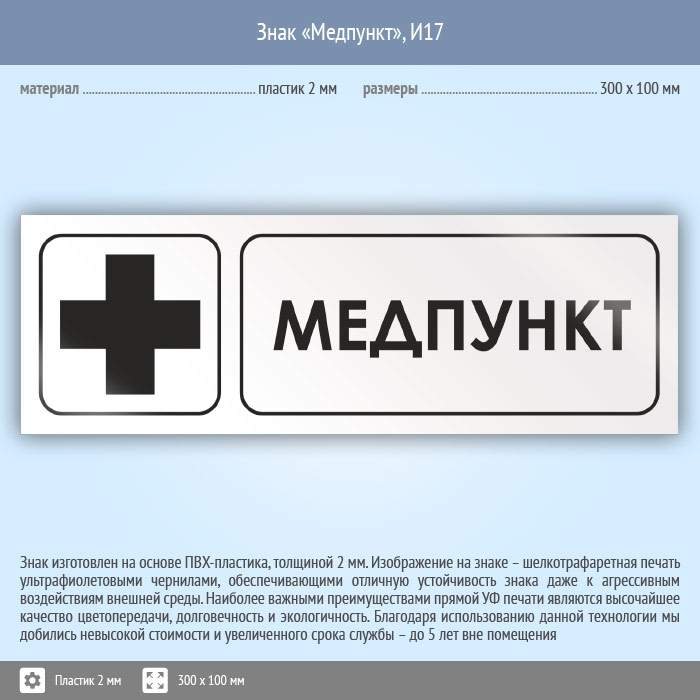 Знак «Медпункт», И17 (пластик, 300х100 мм) в Яхроме купить