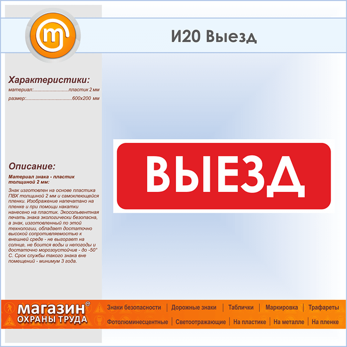 Знак «Выезд», И20 (пластик, 600х200 мм) в Яхроме купить