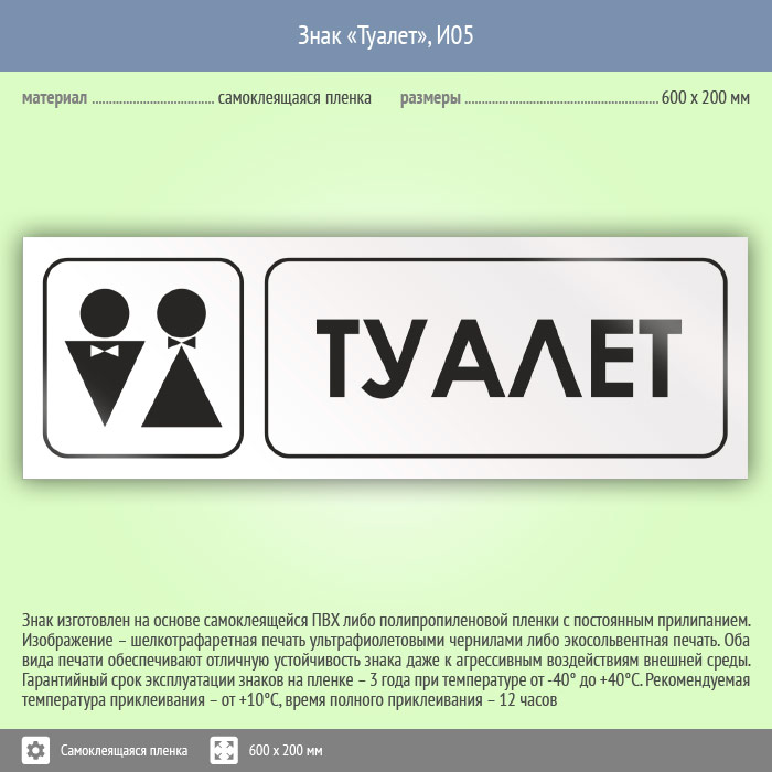 Знак «Туалет», И05 (пленка, 600х200 мм) в Яхроме купить