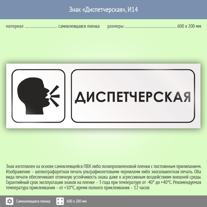 Знак «Диспетчерская», И14 (пленка, 600х200 мм) в Яхроме купить