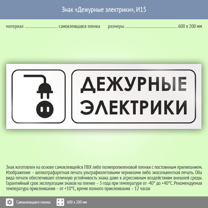 Знак «Дежурные электрики», И15 (пленка, 600х200 мм) в Яхроме купить