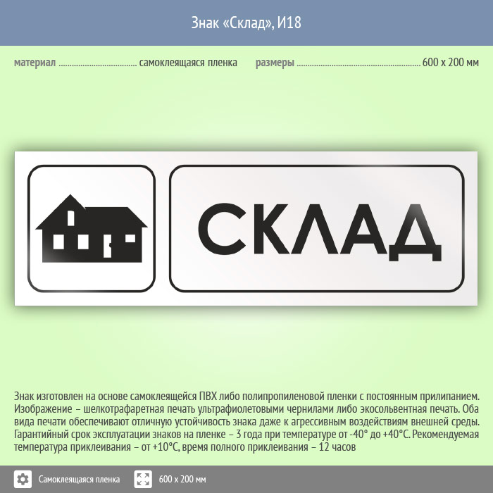 Знак «Склад», И18 (пленка, 600х200 мм) в Яхроме купить