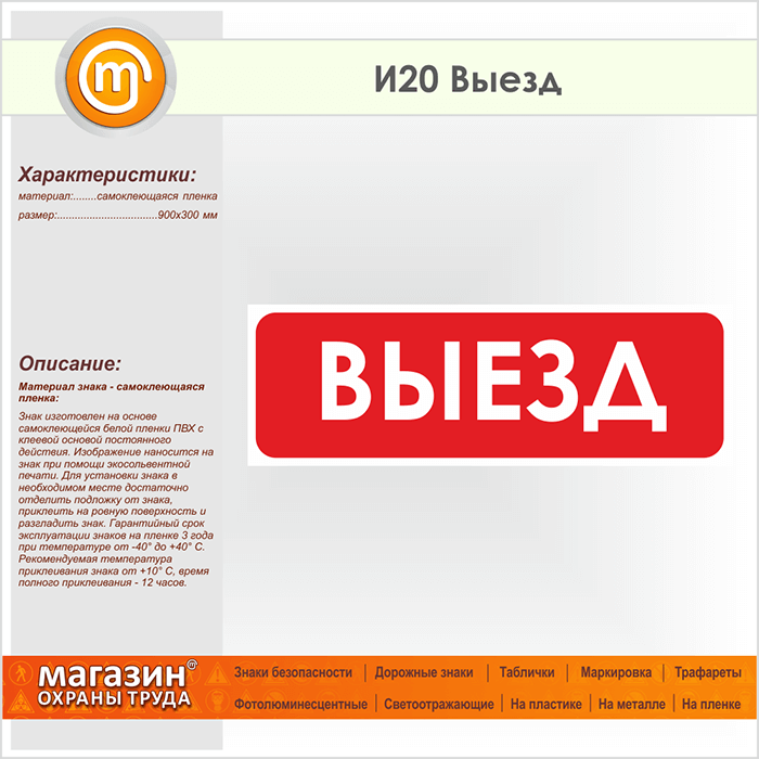 Знак «Выезд», И20 (пленка, 900х300 мм) в Яхроме купить