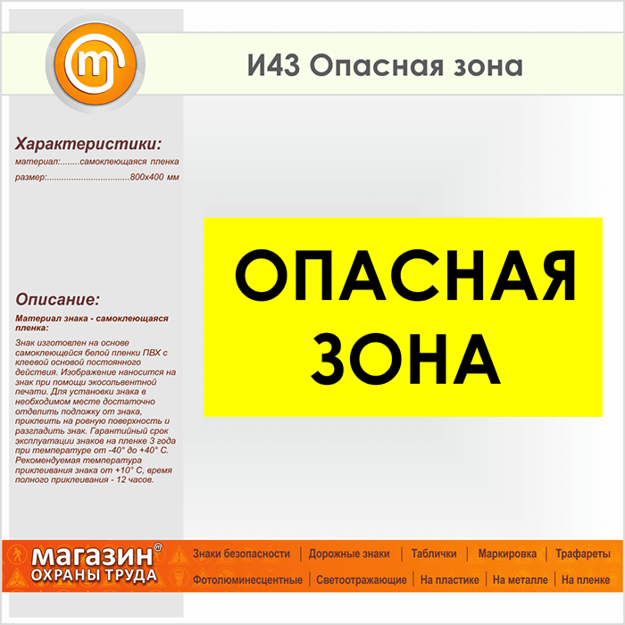 Знак «Опасная зона», И43 (пленка, 800х400 мм) в Яхроме купить