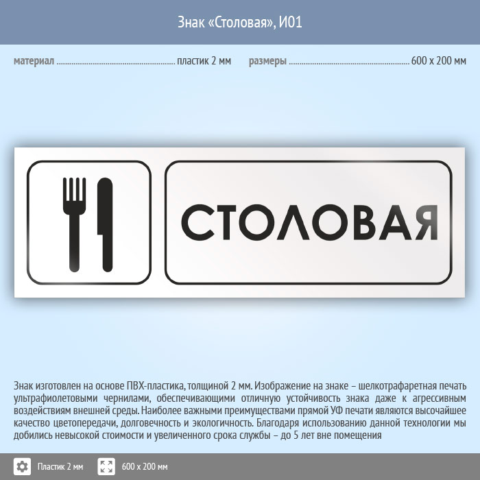 Знак «Столовая», И01 (пластик, 600х200 мм) в Яхроме купить