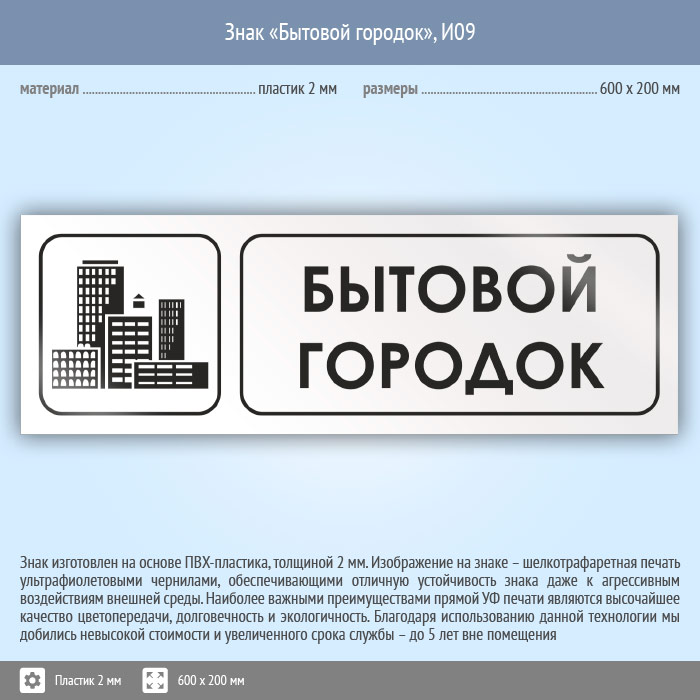 Знак «Бытовой городок», И09 (пластик, 600х200 мм) в Яхроме купить