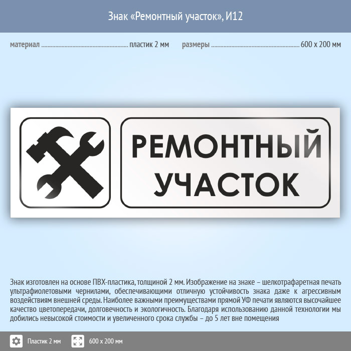 Знак «Ремонтный участок», И12 (пластик, 600х200 мм) в Яхроме купить