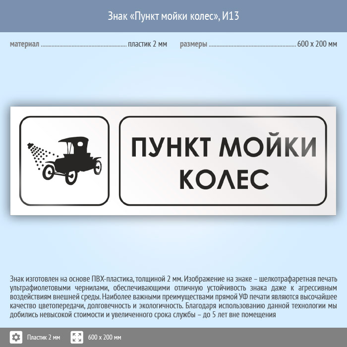Знак «Пункт мойки колес», И13 (пластик, 600х200 мм) в Яхроме купить