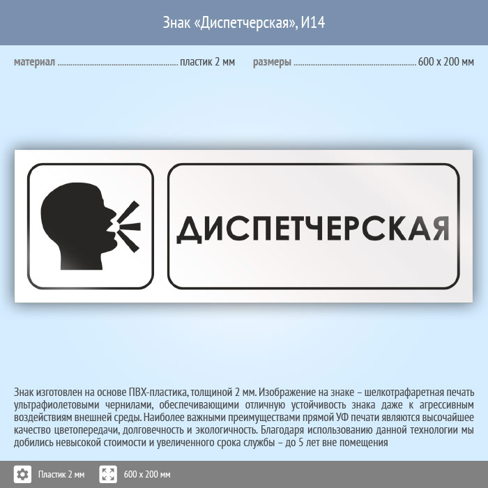 Знак «Диспетчерская», И14 (пластик, 600х200 мм) в Яхроме купить