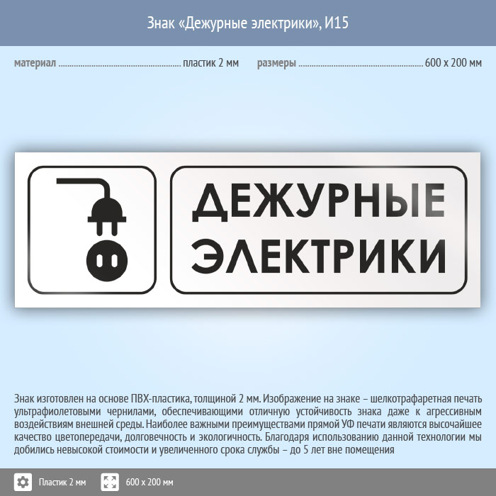 Знак «Дежурные электрики», И15 (пластик, 600х200 мм) в Яхроме купить