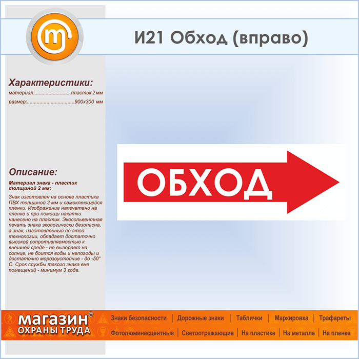 Знак «Обход (вправо)», И21 (пластик, 900х300 мм) в Яхроме купить