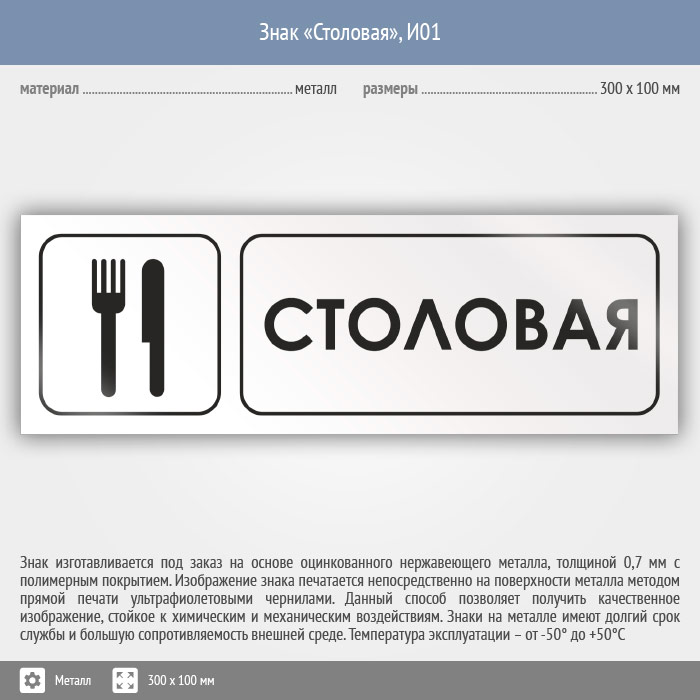 Знак «Столовая», И01 (металл, 300х100 мм) в Яхроме купить
