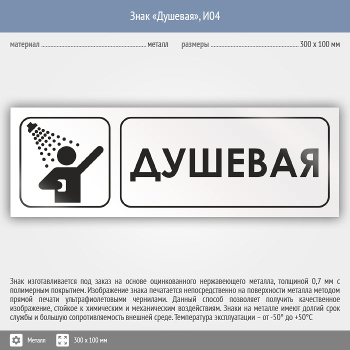 Знак «Душевая», И04 (металл, 300х100 мм) в Яхроме купить