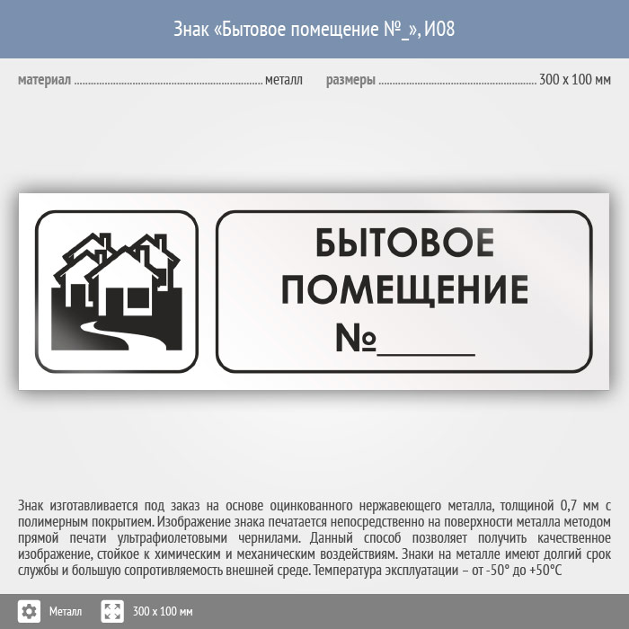 Знак «Бытовое помещение №_», И08 (металл, 300х100 мм) в Яхроме купить