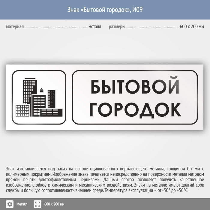 Знак «Бытовой городок», И09 (металл, 600х200 мм) в Яхроме купить